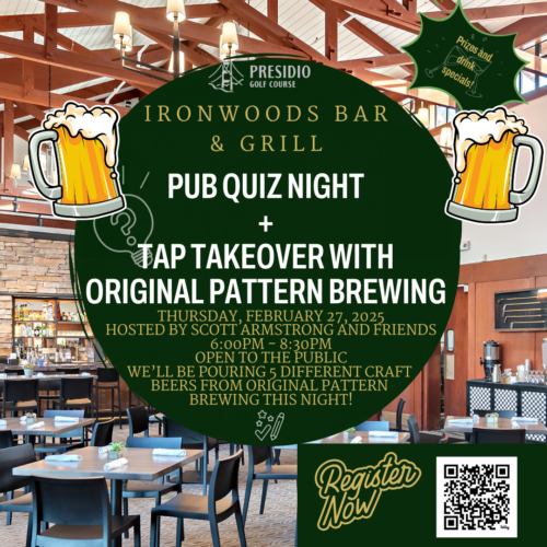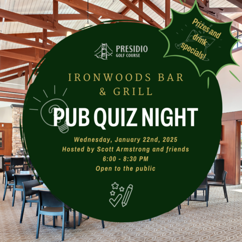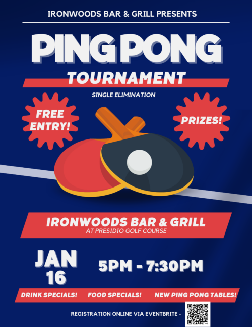 Ironwoods Bar & Grill 300 Finley Road, San Francisco, CA, United StatesJoin us for our first Ping Pong Tournament of 2025 at The Presidio Golf Course! Get ready to show off your skills and compete against other ping-pong enthusiasts. This event will take place Thursday, Jan. 16 at 5:00 PM at the beautiful Presidio Golf Course. Whether you're a seasoned player or just looking to have some fun, this event is […]