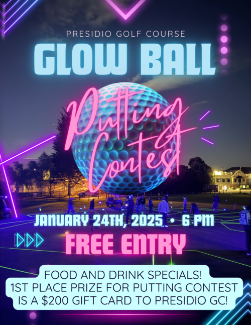 Welcome to the Glow Ball Putting Contest at The Presidio Golf Course! Get ready for a fun evening of glow-in-the-dark putting under the stars. Join us on FRI JANUARY 24, 2025 at 6:30 PM at the beautiful Presidio Golf Course for a unique golfing experience. Grab your friends and family for a night of friendly competition and enjoy our […]